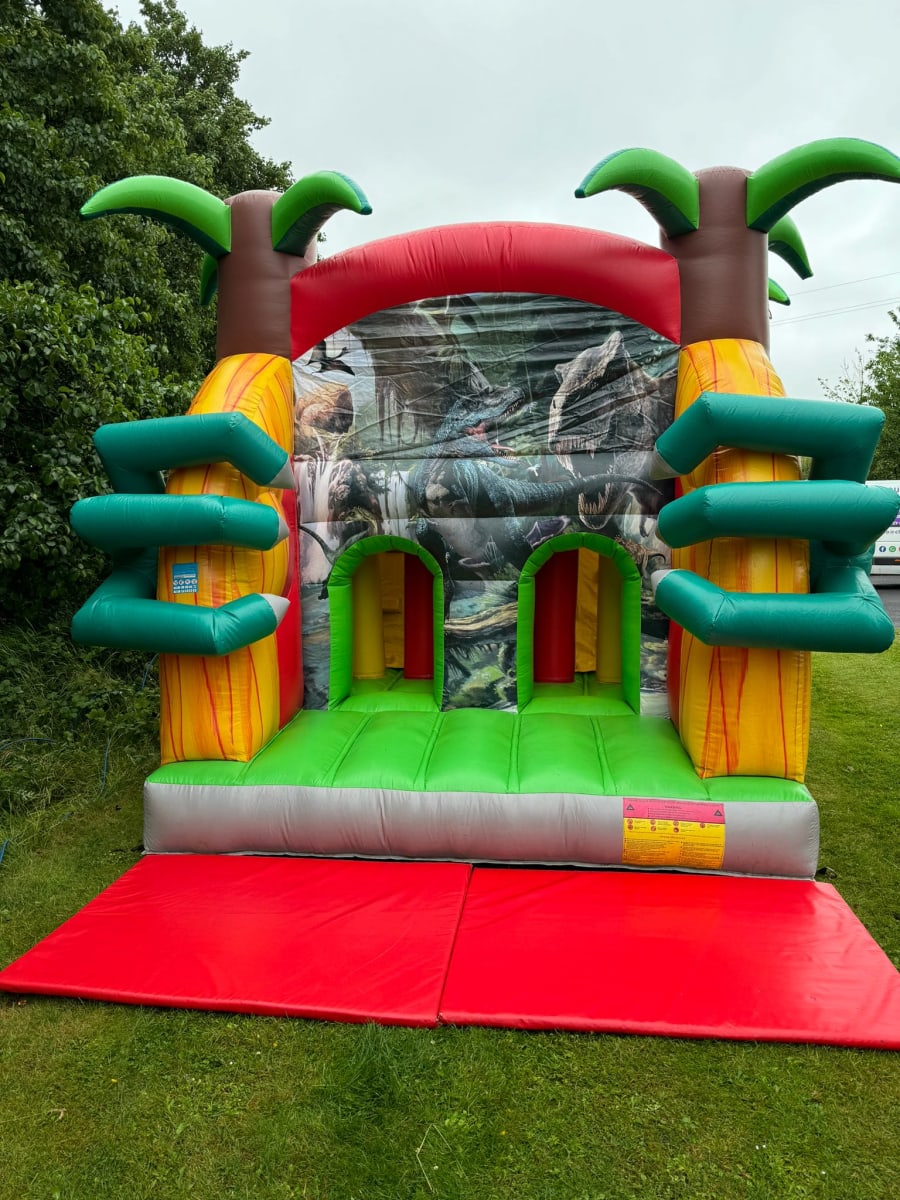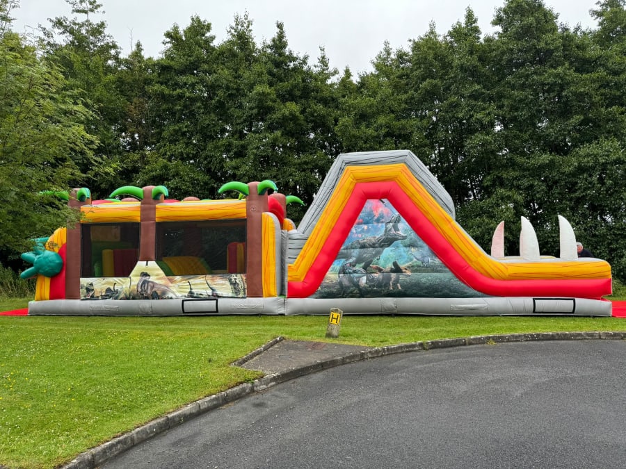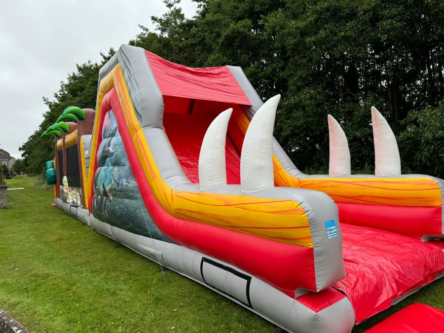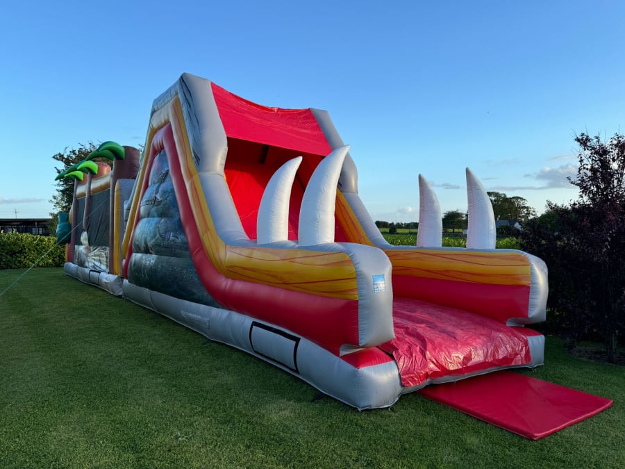 🦖🎉 Embark on a Mesmerizing Journey in Your Backyard! 🎉🦖 Hold onto your safari hats because it's time to transport your backyard back to the thrilling Jurassic period! 🌴 Get ready to unleash the adventure of a lifetime with the Jurassic Obstacle Course – a colossal 50-foot Dinosaur wonderland that's about to roar to life for your young explorers! Prepare for a mesmerizing experience as you dive headfirst into the world of dinosaurs and prehistoric wonders. This epic course is loaded with heart-pounding features, including a towering slide that'll make your heart race faster than a T-Rex on the hunt! 🦕🌋 But beware, adventurers! This prehistoric paradise won't be around forever. Don't let this chance to unearth the secrets of the past go extinct. Hurry, book now, and let the Jurassic fun begin! 🦖🌟🔥